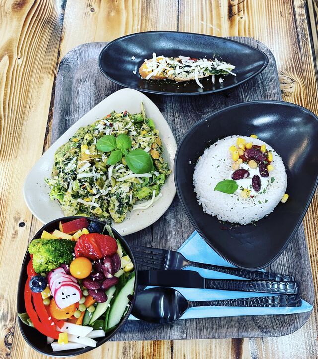 “Entdecken Sie unsere frisch zubereiteten Nudel- und Reisgerichte, Menüs, Bowls und Salate, die speziell für Fleischliebhaber, Veganer und Vegetarier empfohlen werden. Lassen Sie sich von unserer vielfältigen Auswahl begeistern und genießen Sie eine geschmackvolle Erfahrung!”